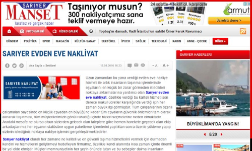 Türkiye'nin önde gelen haber sitelerinden ( Cumhuriyet, Ensonhaber, Onedio, Radikal, Gazeteoku, ABC Gazetesi ) backlinki bulunan, Dmoz ve Google News kayıtlı yerel haber sitesinde süresiz tanıtım yazısı fırsatı!